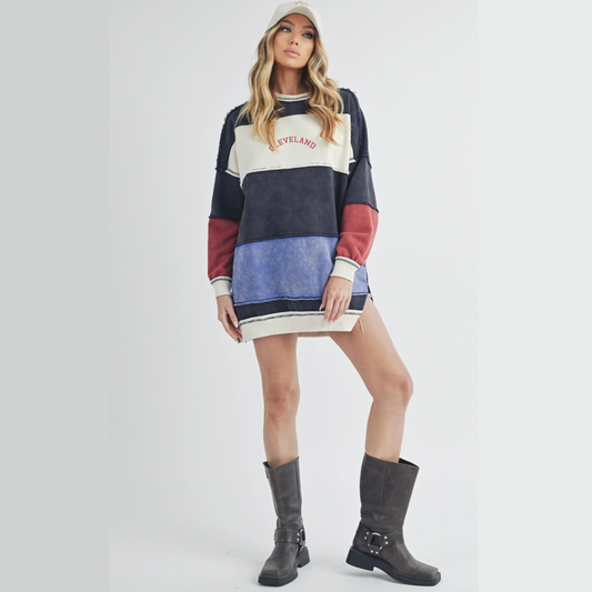 Cleveland Ohio Oversized Paint Splatter Hoodie - Navy Blue