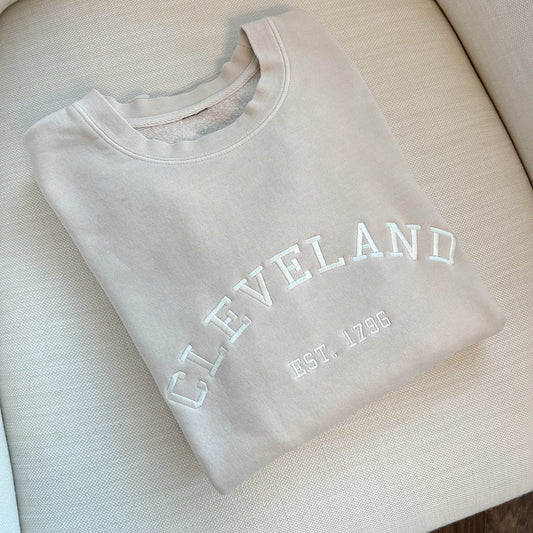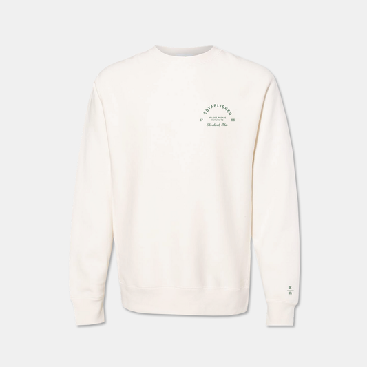 Return to Cleveland Puff Crewneck - Ivory/Forest Green