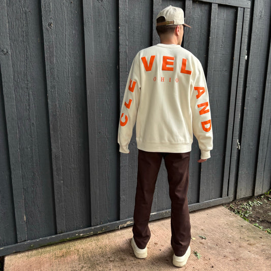 Return to Cleveland Puff Crewneck - Ivory/Orange