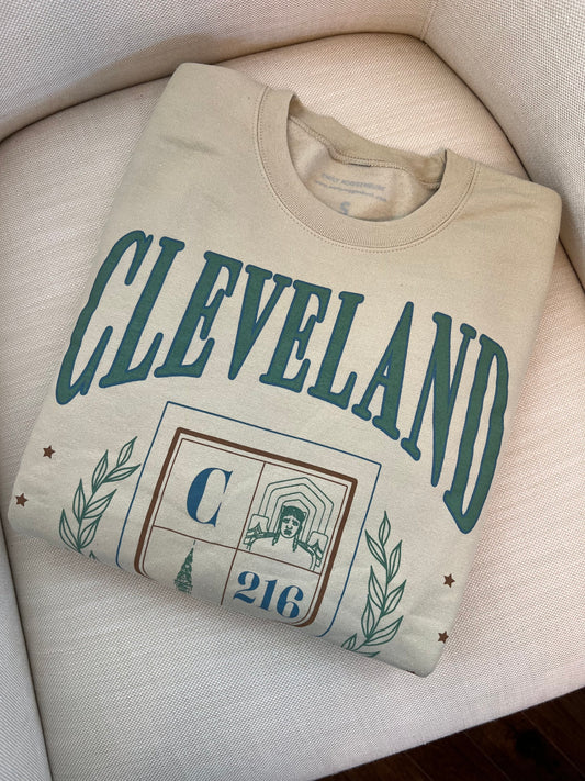 Cleveland Vintage-Style Crewneck Sweatshirt - Sand