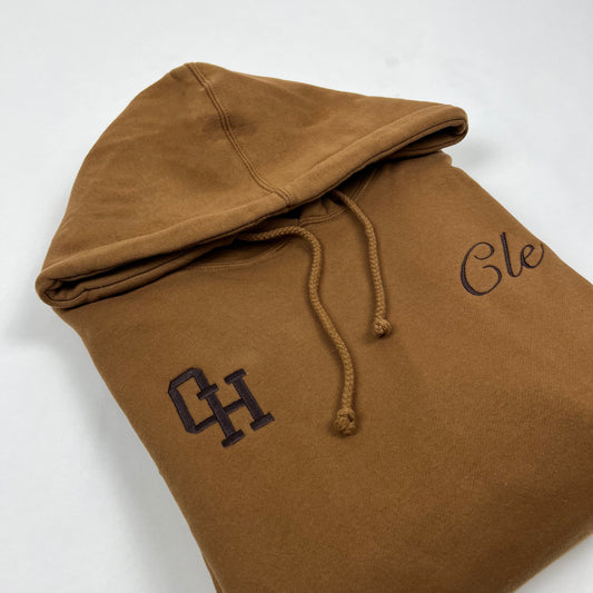 Iconic Cleveland Embroidered Hoodie - Camel Brown