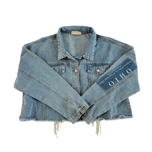 OOAK - Property of Cleveland Rhinestone Fringe Denim Jacket