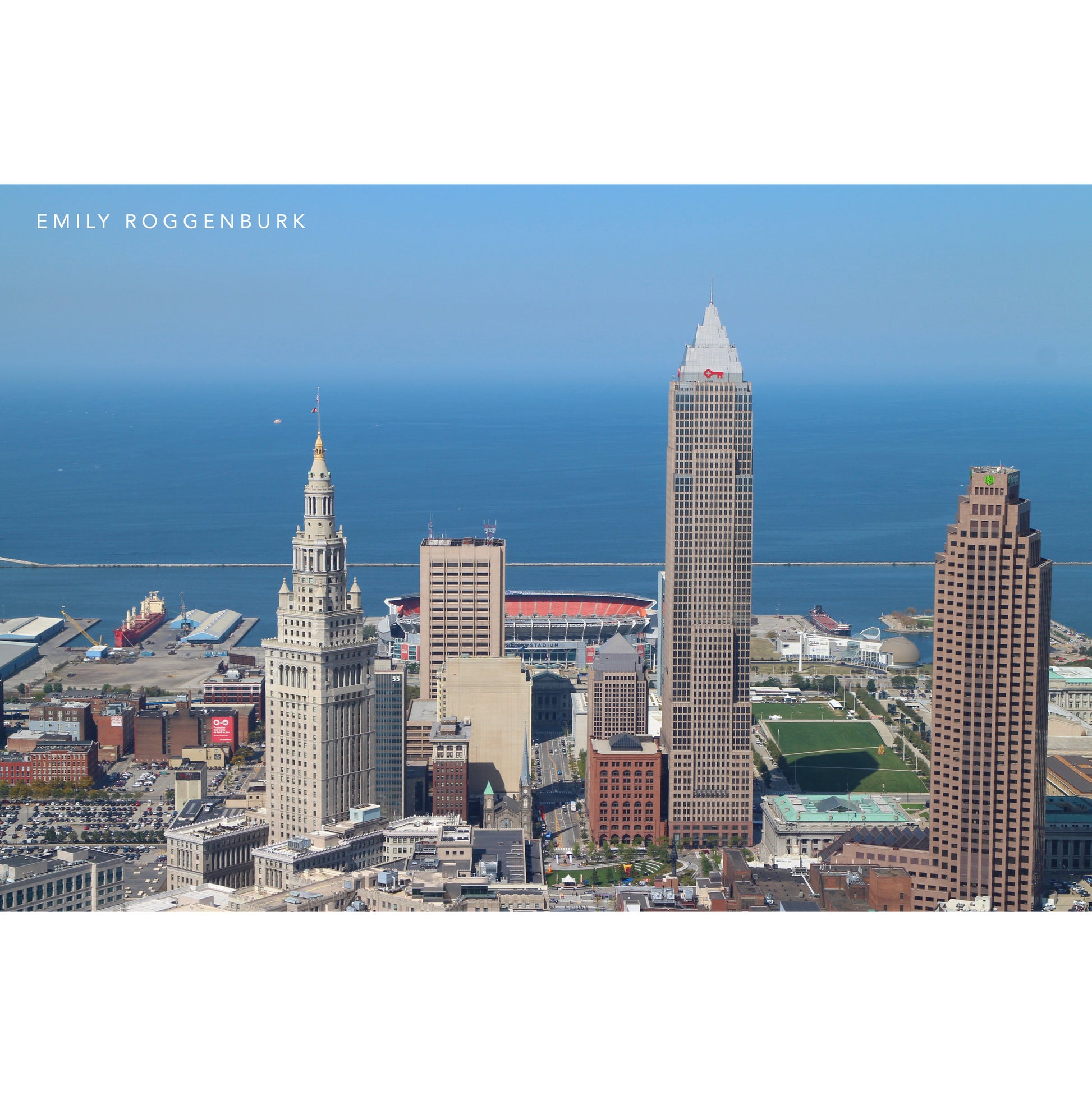 The "City On The Lake" photo was taken by Emily Roggenburk from a helicopter in September of 2017 over the Cleveland city skyline.