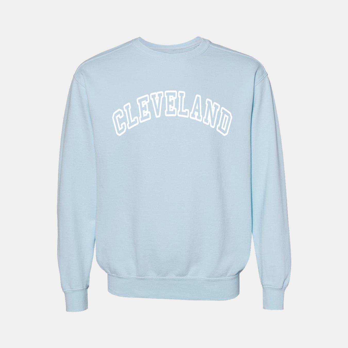 Represent your favorite city this summer with this all new garment-dyed collection of Cleveland college crewnecks.