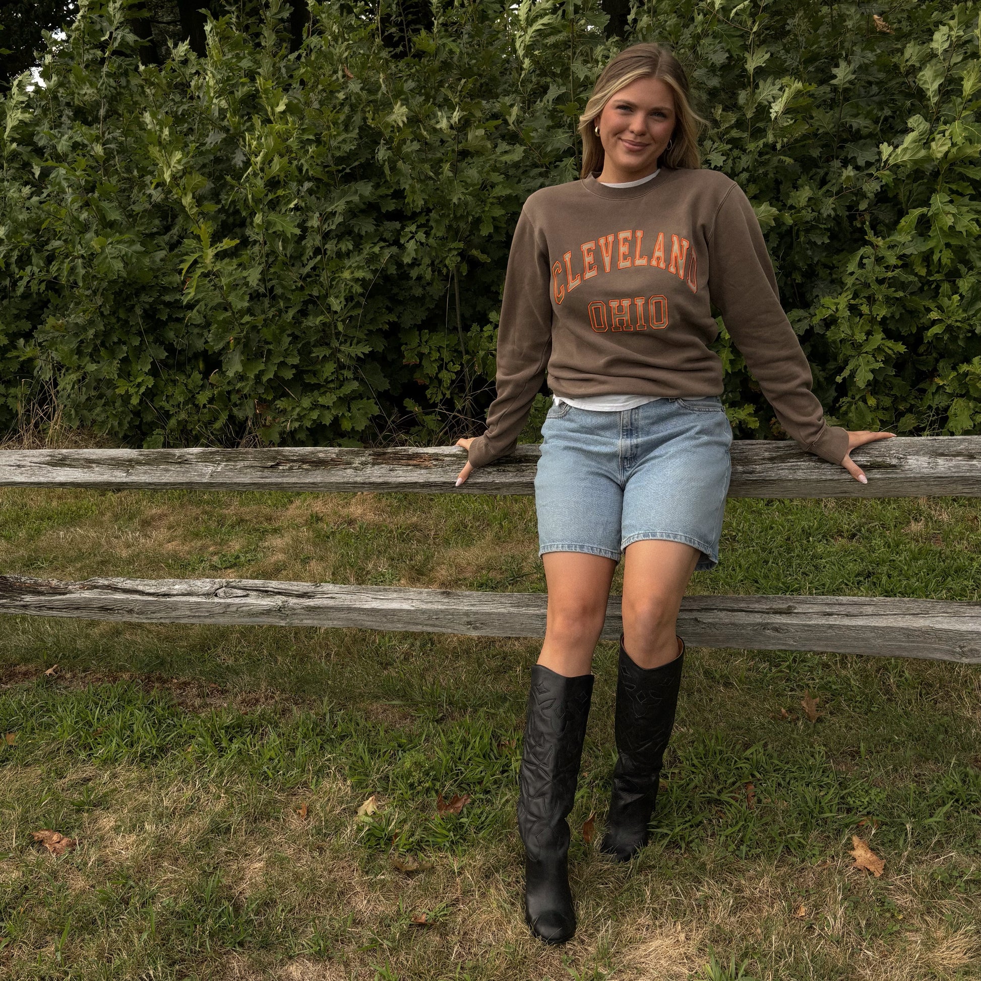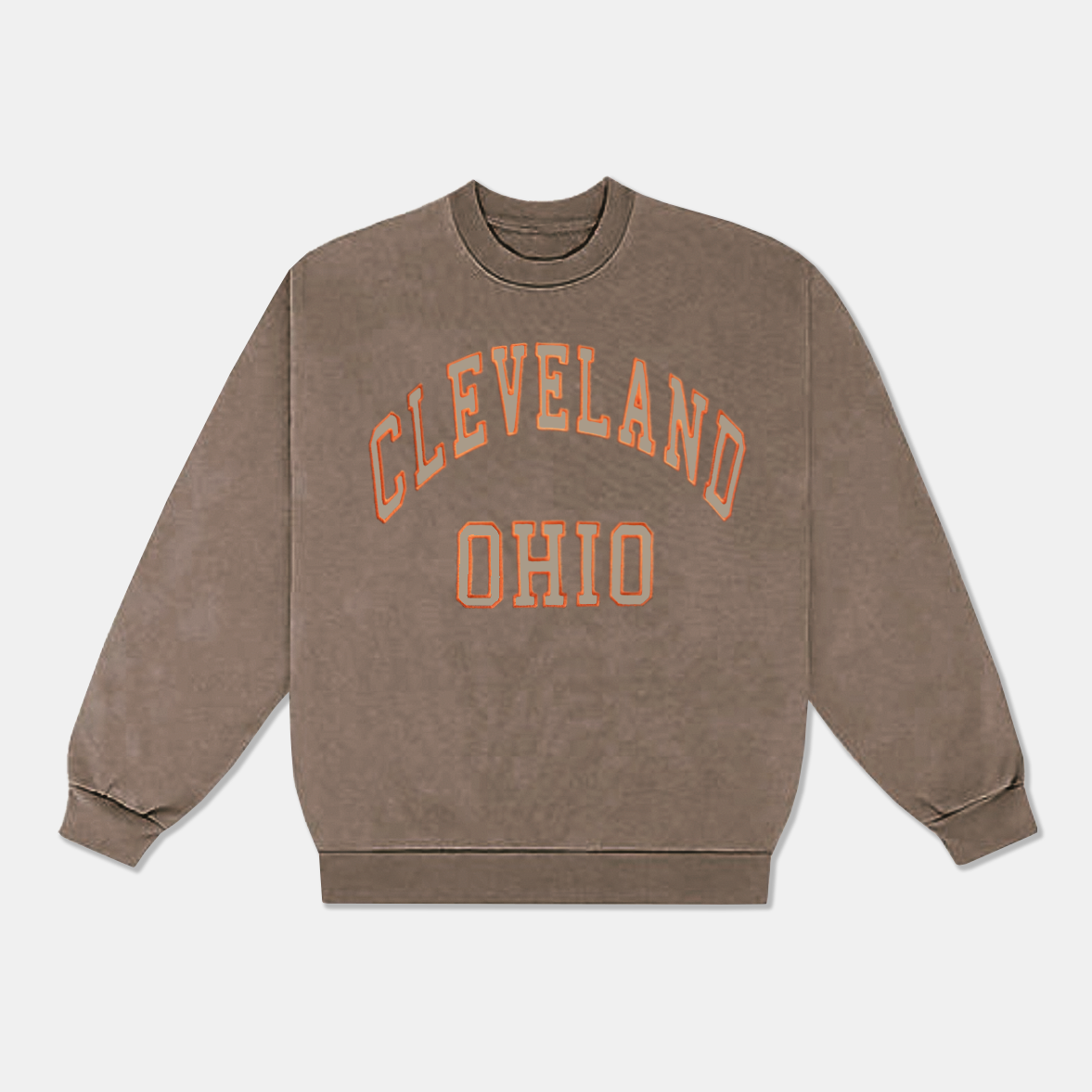 Cleveland Ohio Fabric Crewneck - Espresso/Orange