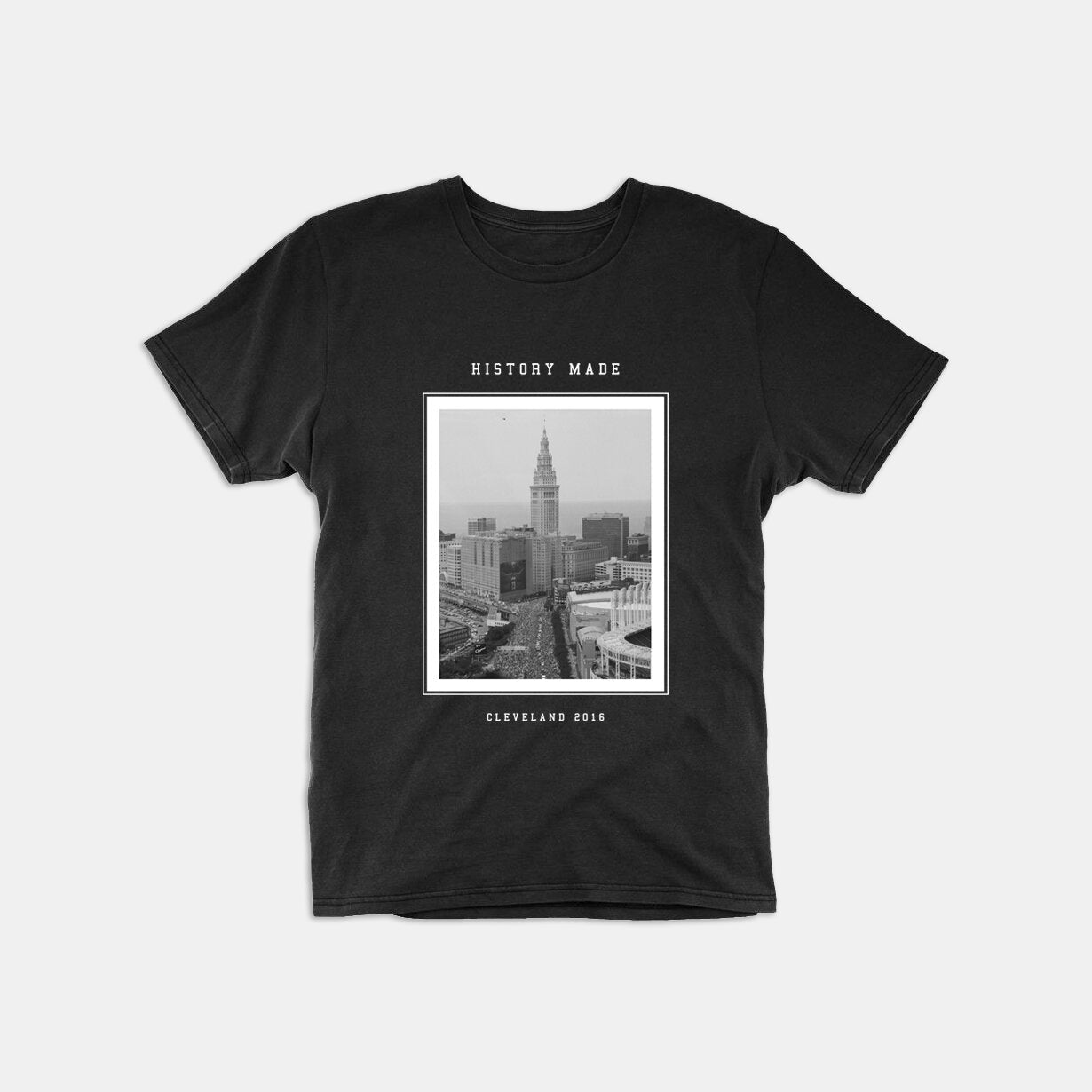 The History Made t-shirt features the “Witnesses” photo from the 2016 Cleveland Cavaliers Championship Parade, which Emily took from a helicopter.