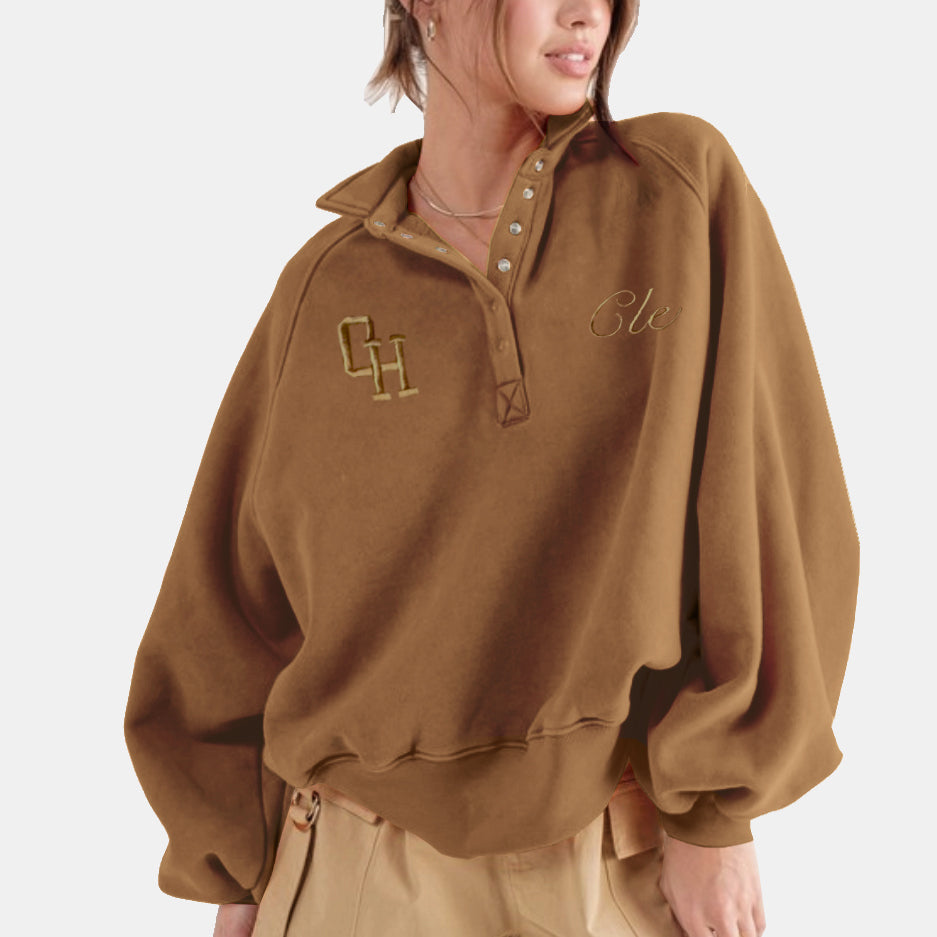 Iconic Cleveland Embroidered Collared Sweatshirt - Camel