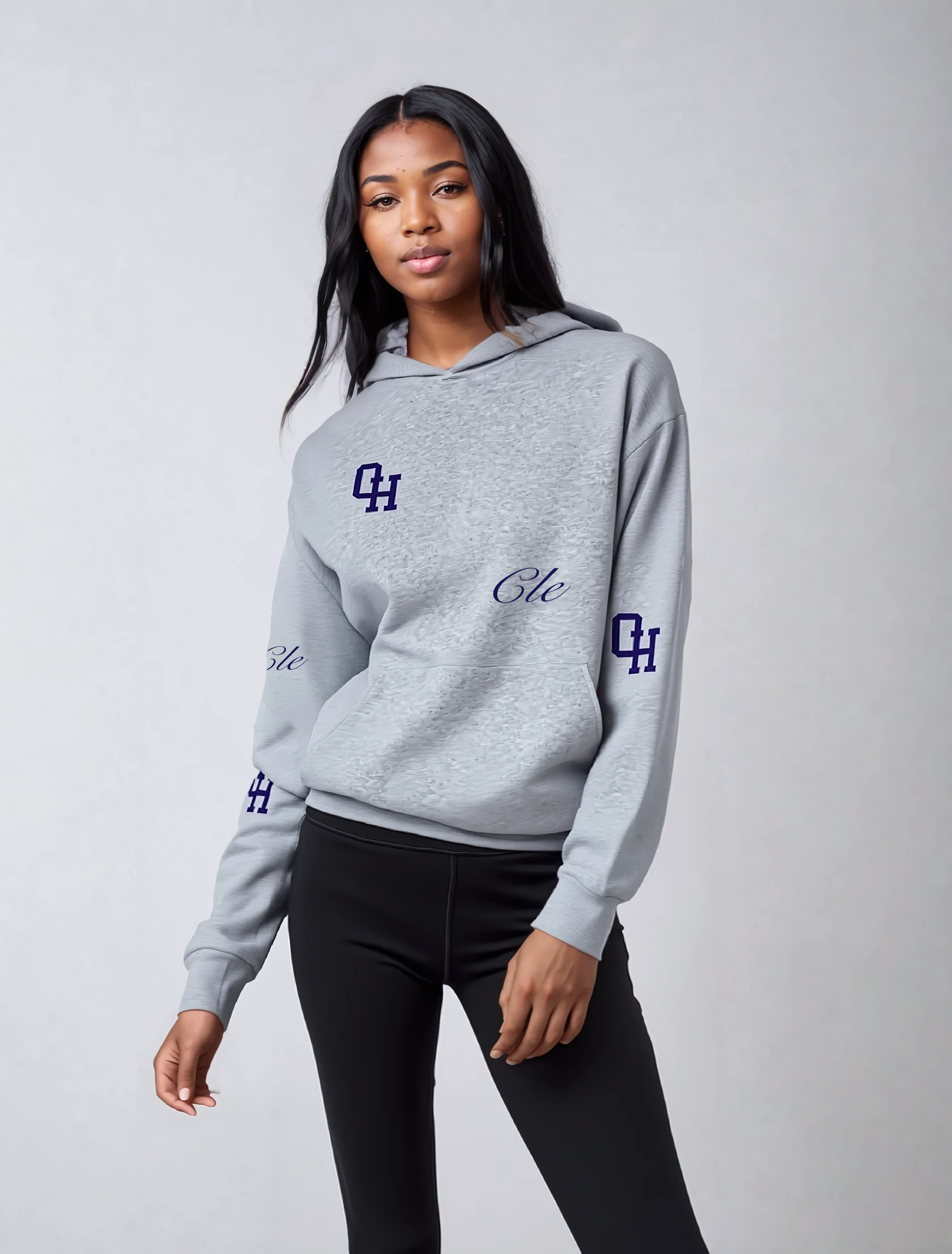 Iconic Cleveland Remixed Embroidered Hoodie - Gray/Navy