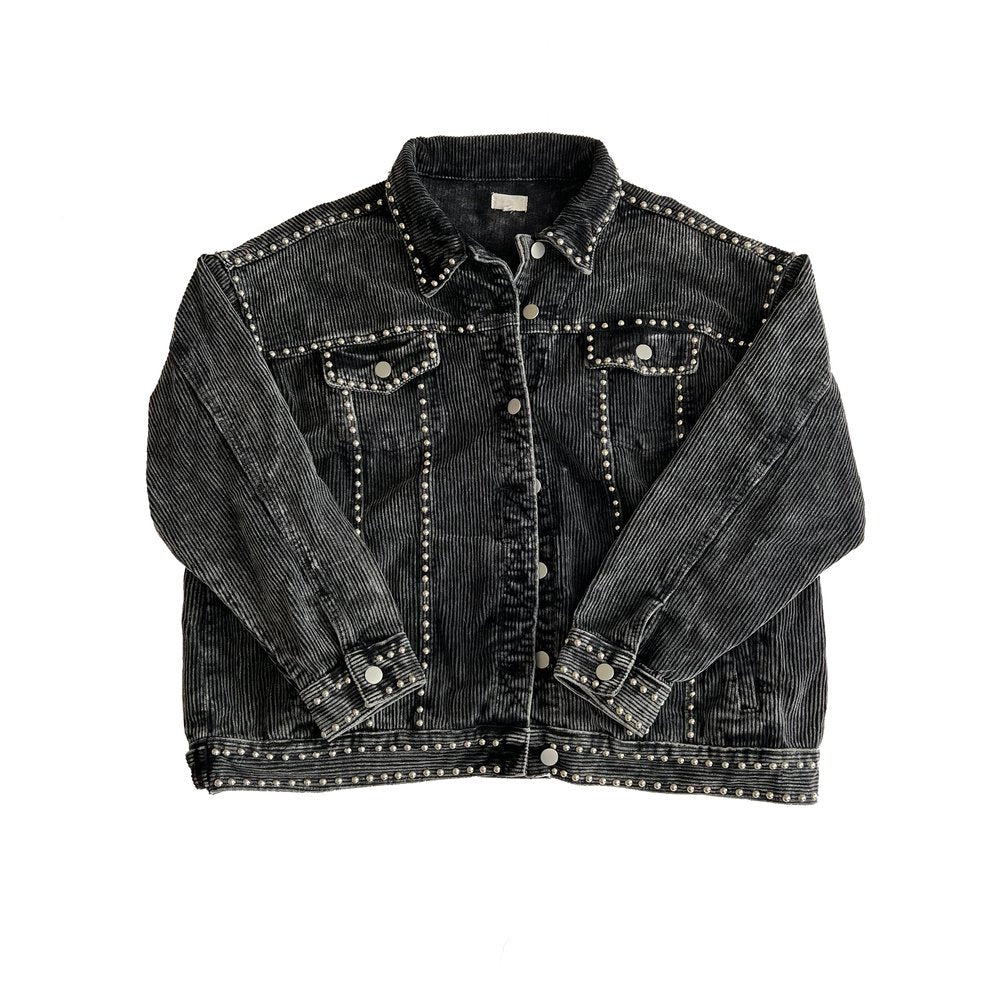 - Black corduroy jacket with silver studs