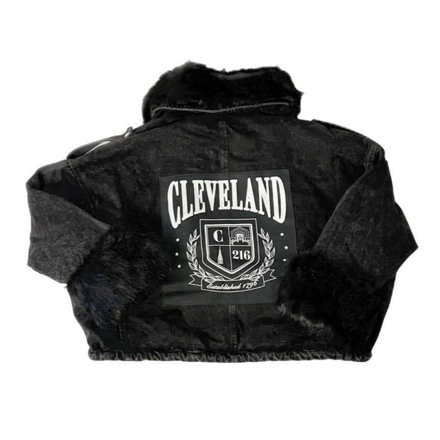 OOAK - Cleveland Vintage Style Faux Fur-Lined Denim Jacket