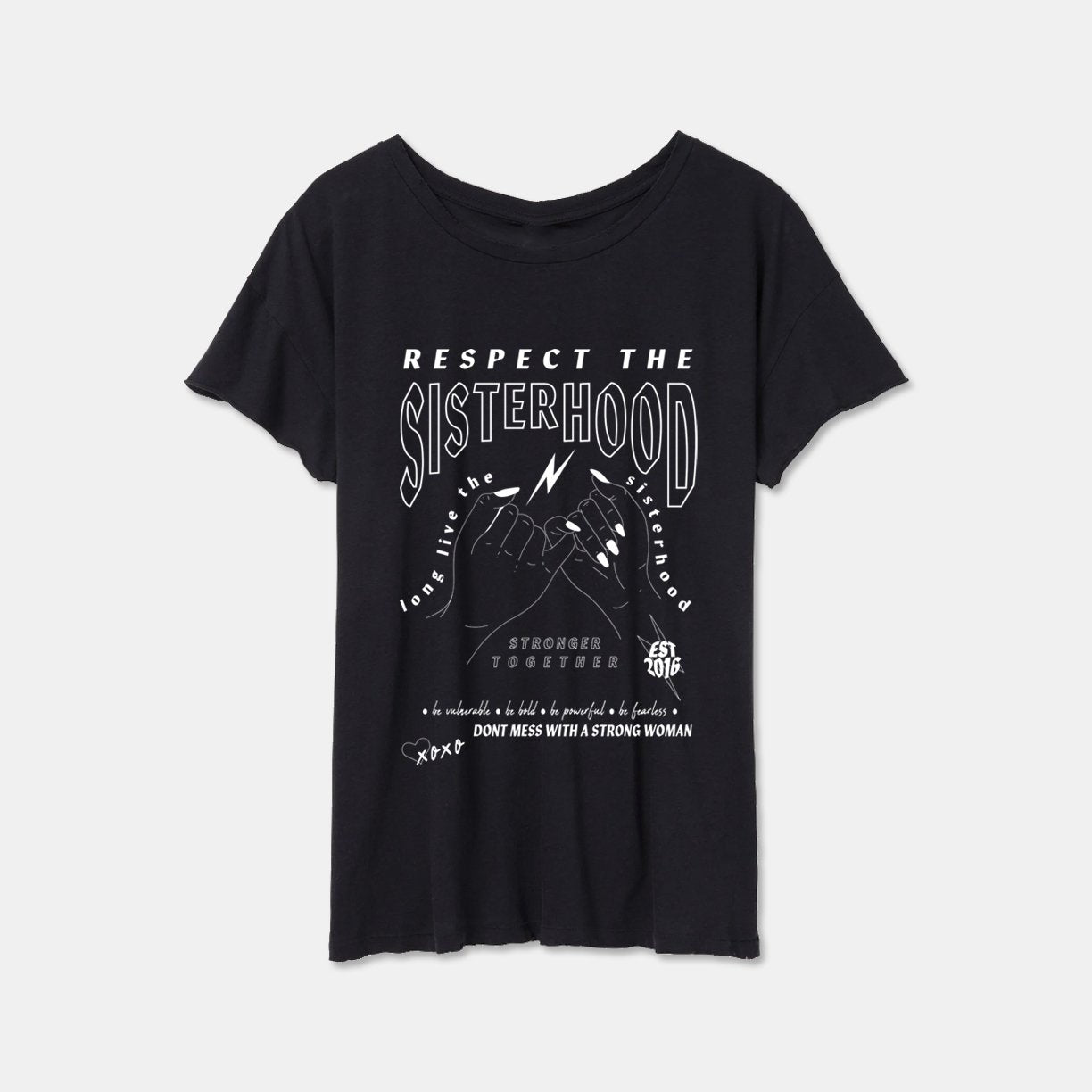 A remake of our classic “Respect The Sisterhood” t-shirt, this all new design is perfect for supporting your sisters out there.
