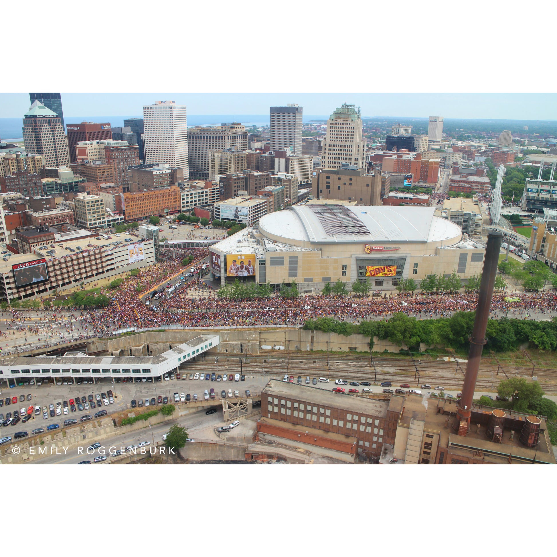 "The Q" was taken by Emily Roggenburk as she flew over the city in a helicopter during the Cleveland Cavaliers Championship Parade on June 22, 2016.