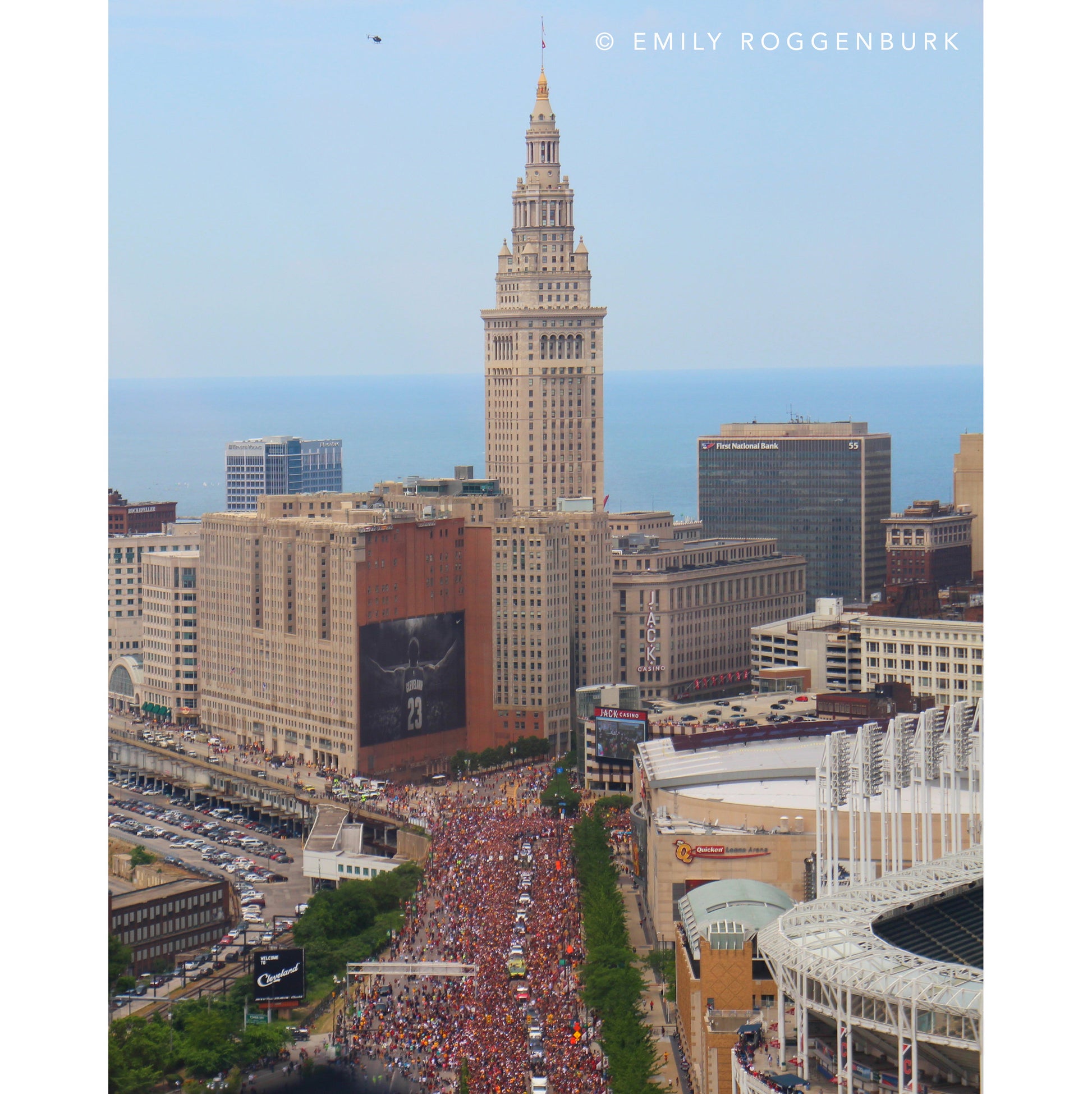 The "Witnesses" photo was taken by Emily Roggenburk as she flew over the city in a helicopter during the Cleveland Cavaliers Championship Parade on June 22, 2016.