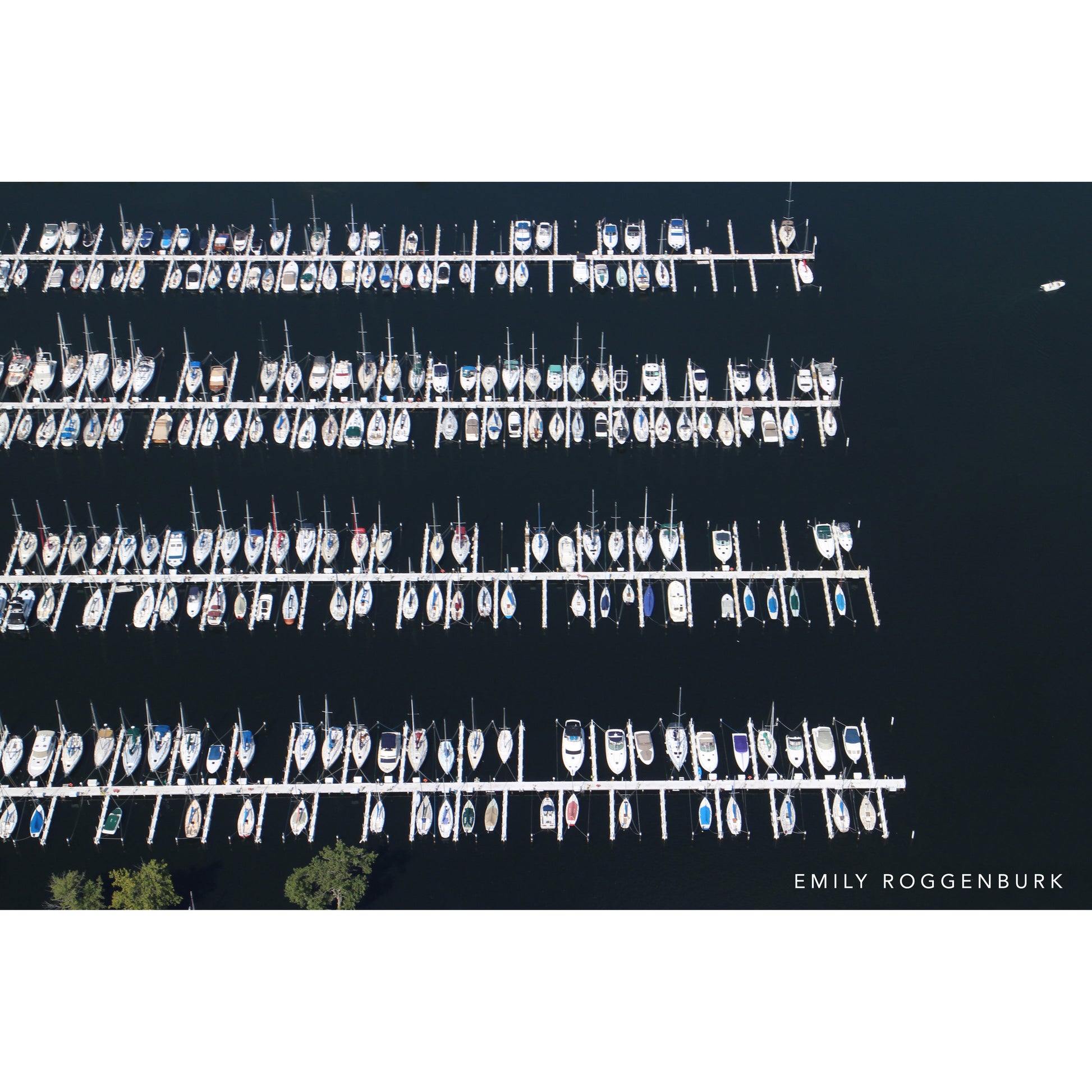 The "Yacht Club" photo was taken by Emily Roggenburk from a helicopter in September of 2017 over Lake Erie.